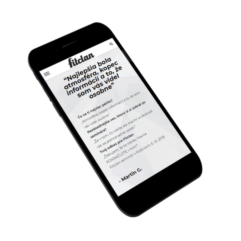 Že mobilní zařízení válcují ta ostatní co do počtu procházení webů není žádná novinka – v případě Fitclanu ovšem tvoří návštěvníci z nich až 84 % celého publika. A právě proto musela být kvalitní responzivita i pro mobilní zařízení samozřejmostí.